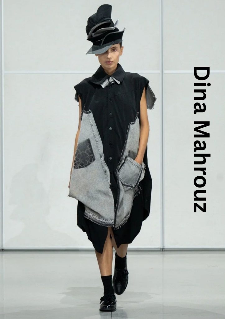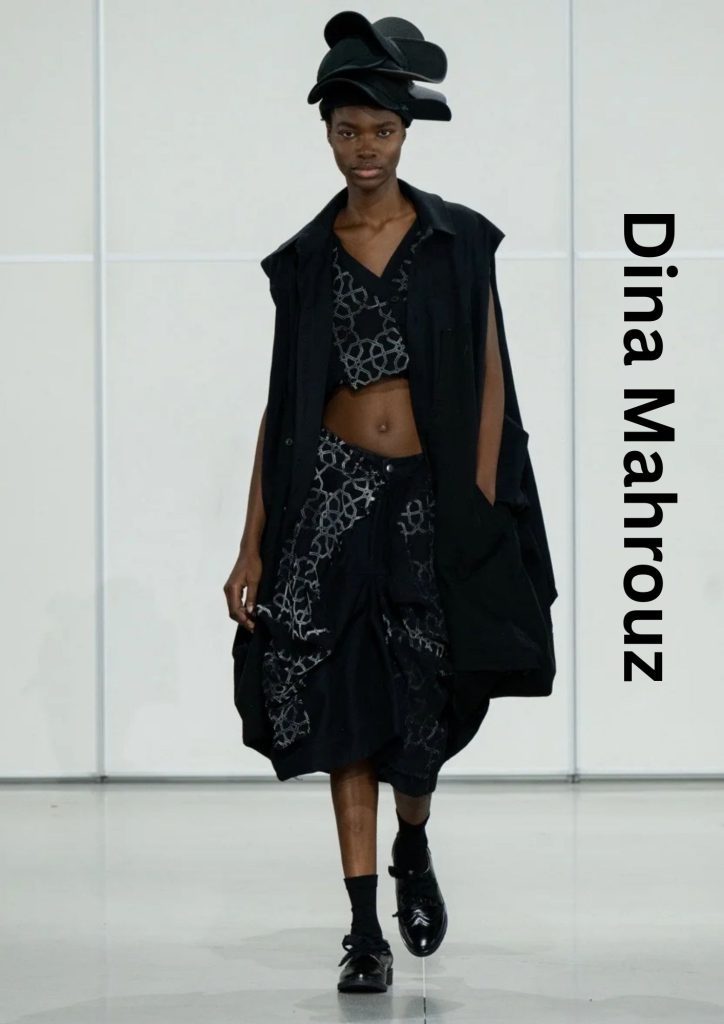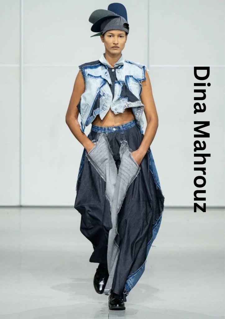 Technically ambitious and sustainably minded, the collection features complex 3D silhouettes transformed from 2D geometric puzzles that shift dynamically with the wearer’s movement. Mahrouz demonstrated a commitment to "sustainable luxury" by composing half of her work from upcycled secondhand cotton and denim, elevating discarded materials to the level of high-concept fashion. By employing a largely monochrome color story, she directs the viewer’s focus toward the intricate textures and the precision of her pattern-making, creating a sharp contrast between rigid aesthetics and breathable, natural textiles. Critics have praised the collection for its "technical mastery," noting that by physically deconstructing the frameworks of her past, Mahrouz has created a body of work that is as academically rigorous as it is deeply human.