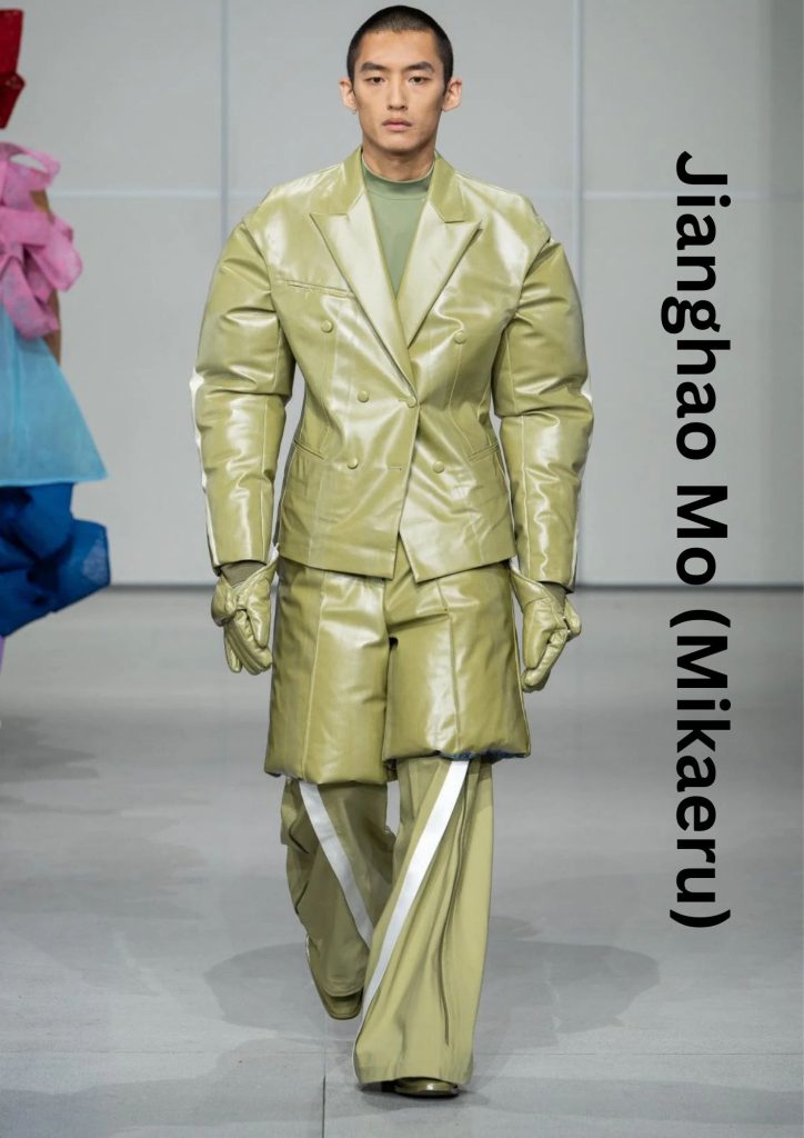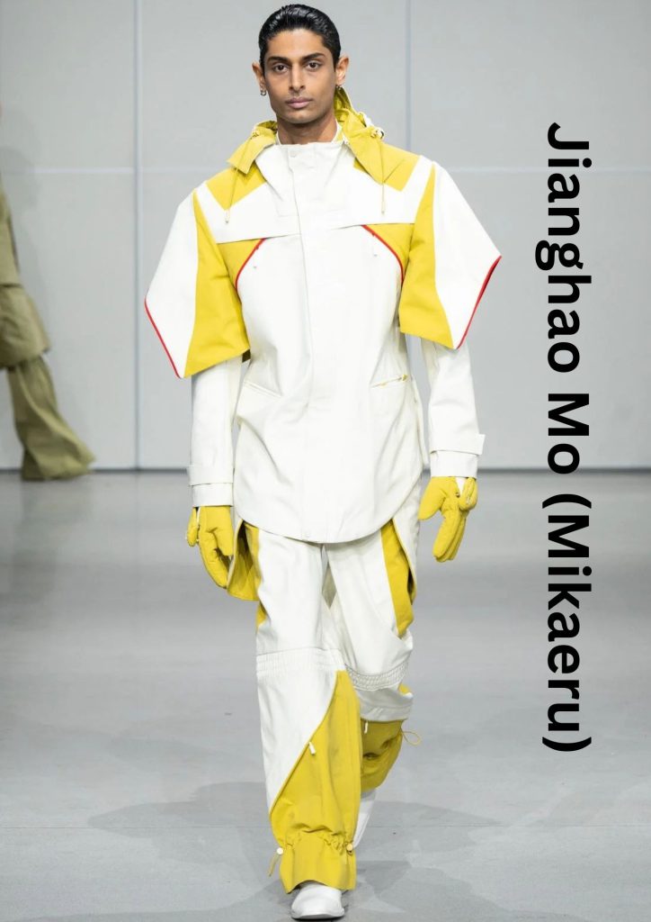 Jianghao Mo (Mikaeru) solidified his reputation as a visionary in "tech-artisanal" fashion with his 2025 Parsons MFA collection, "Cut by Wind, Sewn by Hand." Shown as part of the prestigious Generation 14 runway during New York Fashion Week, the collection was a sophisticated response to the demands of a changing climate, blending the precision of high-end tailoring with the rugged functionality of extreme performance gear. Mikaeru utilized a contrast of materials—pairing architectural wool suiting with laser-cut waterproof nylons and thermal shells—to create a "nomadic luxury" aesthetic. The standout feature was his mastery of modularity; by incorporating magnetic hardware and Fidlock systems, he created garments that could be reconfigured on the fly, transforming from sleek city coats into protective, wind-resistant carapaces.