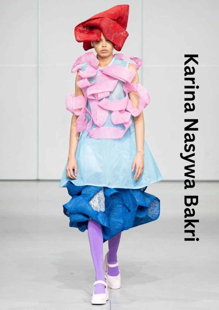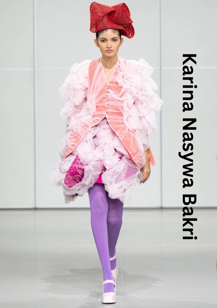 Karina Nasywa Bakri’s collection at the Parsons MFA Fashion Runway Showcase 2025 was a vibrant, deeply personal tribute to her Indonesian heritage and family history. Her work focused on the concept of "controlled chaos," a philosophy inspired by her late father’s architectural sketches. The collection was celebrated for its innovative reimagining of the traditional kebaya, transforming it from a classic blouse into sculptural, three-dimensional forms. By blending delicate motifs with exaggerated volumes and bright, saturated colours—reminiscent of early 2000s Indonesian pop magazines—Bakri created a bridge between nostalgic memory and contemporary silhouettes.