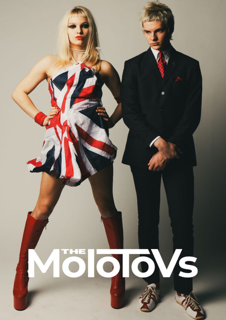 The Molotovs are not just live performers, they are scene-builders. The duo started Youth Explosion out of Wimbledon Library in 2023, an all-ages event that allowed music fans an opportunity to see alternative music in a safe and unconventional space, a space where self expression and acceptance is welcomed above all. Youth Explosion caught the eyes and ears of Sex Pistols drummer, Paul Cookie Cook. He attended a night and joined the band to play God Save The Queen: