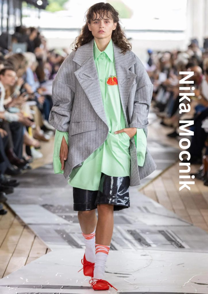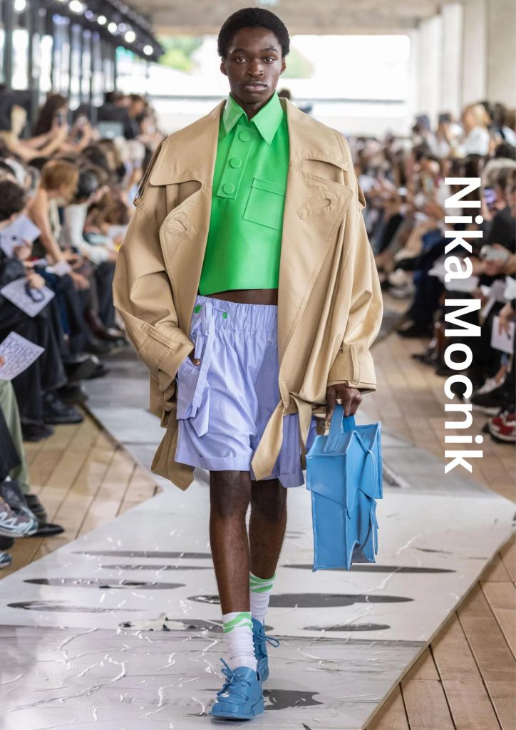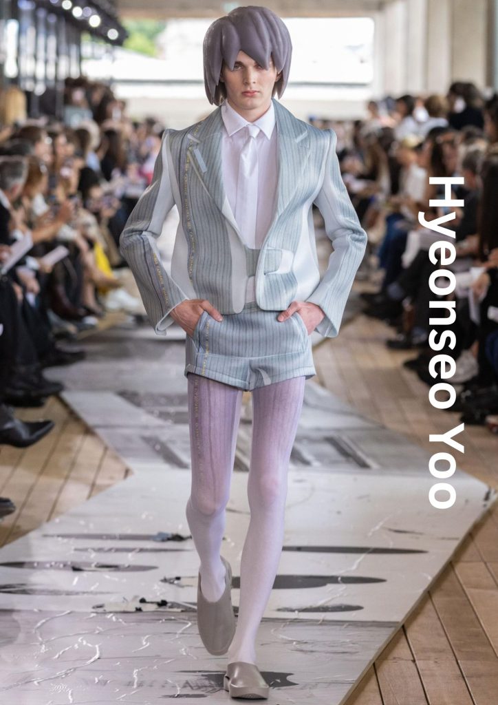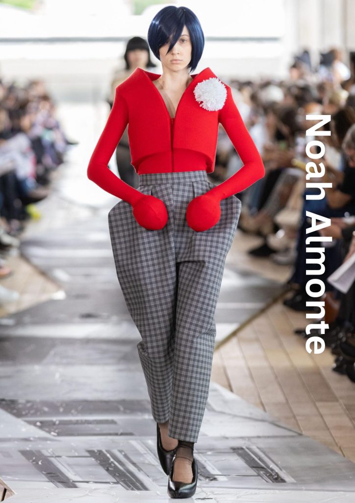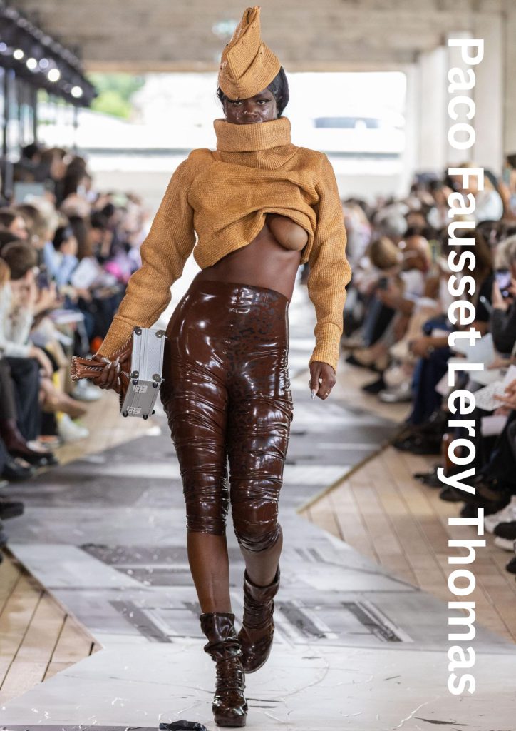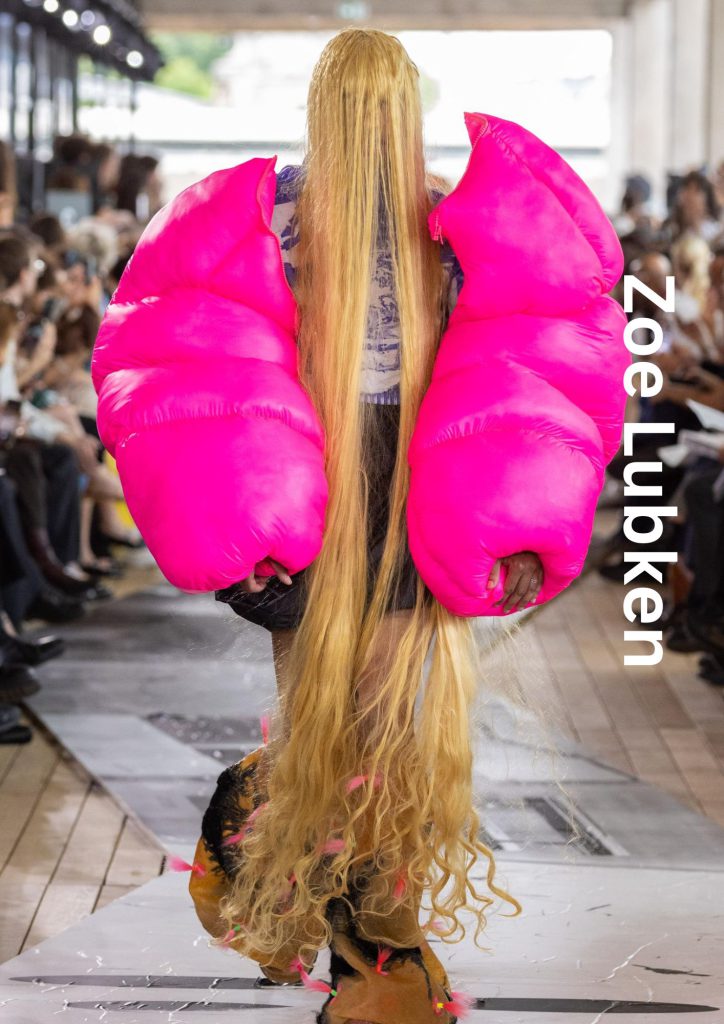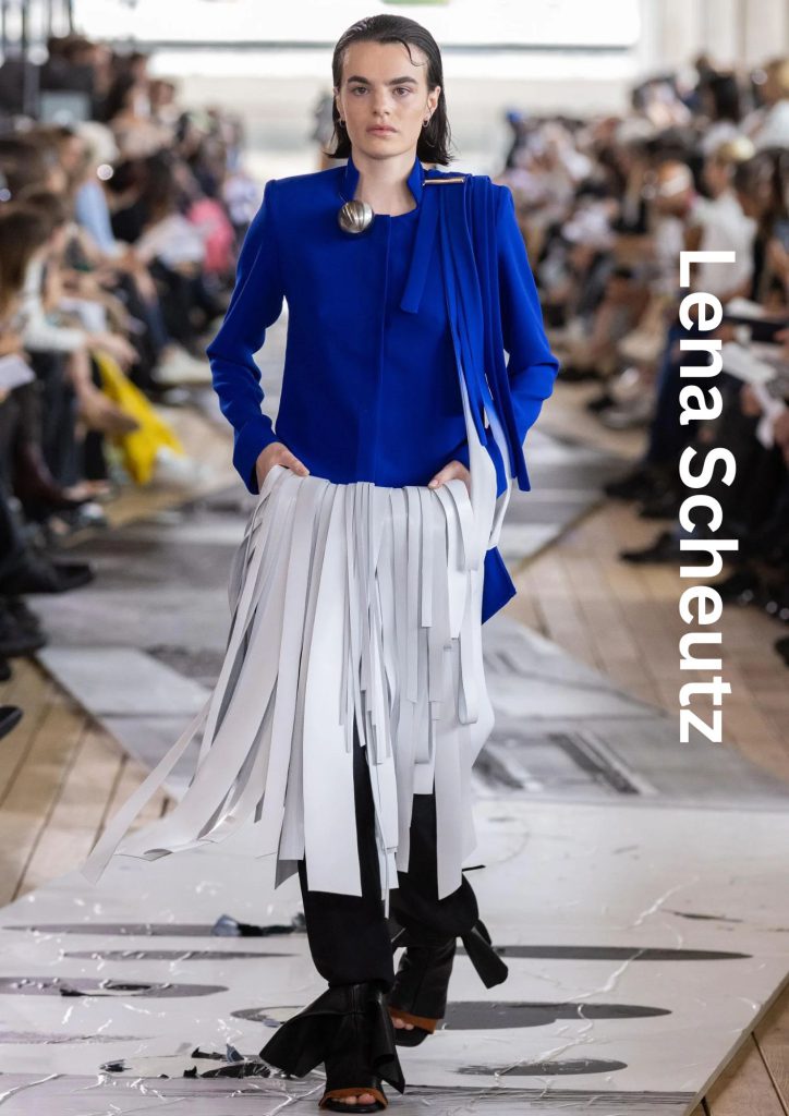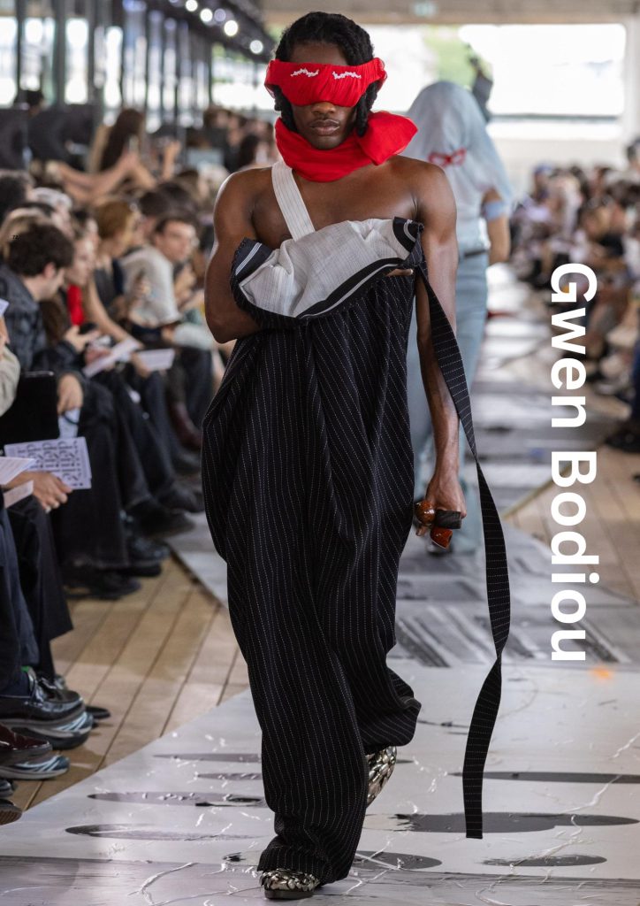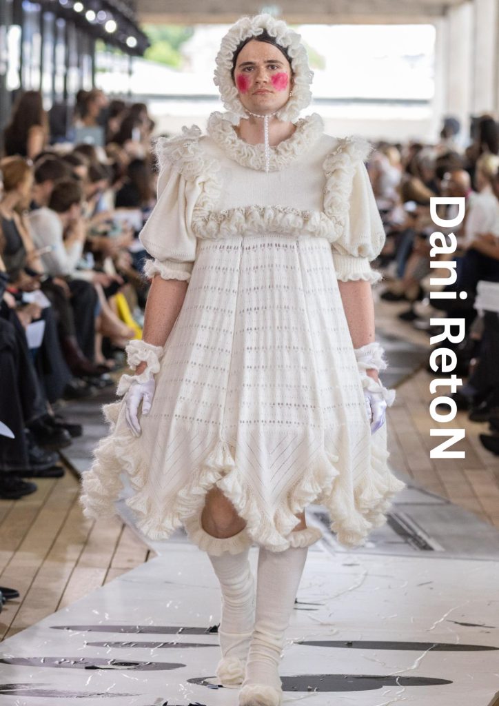 “If I had to sum it up in a few sentences, I would say that this collection features silhouettes imbued with a naïve clumsiness,” says the designer Antoine Lafleur. “It reveals, in a childlike manner, how to create a counterfeit synthetic elegance with whatever is at hand.” The aim of the collection was to create a conversation between a normal guy growing up in the world and a fashion student, growing into the fashion sphere. To make this happen, he juxtaposed 50s and 60s haute couture references that he discovered throughout his research, with something super poetic, raw and basic about Paris, the urban landscapes, the textures, but also the people and their attitude. “My inspiration mainly comes from what surrounds me, the conversations I have, the people I love, and the banality of everyday life that everyone tries in their own way to shape into something exceptional,” he says. He loves sourcing new fabrics – each silhouette has a surprising element. Some of them have a special material, some have a really unusual fabric in general. “I like to show something literal while playing with the eye of the beholder,” he says. Bringing all his constant inspirations together was a challenge, but the result is a coherent, well-constructed, and of course, a surprising collection.