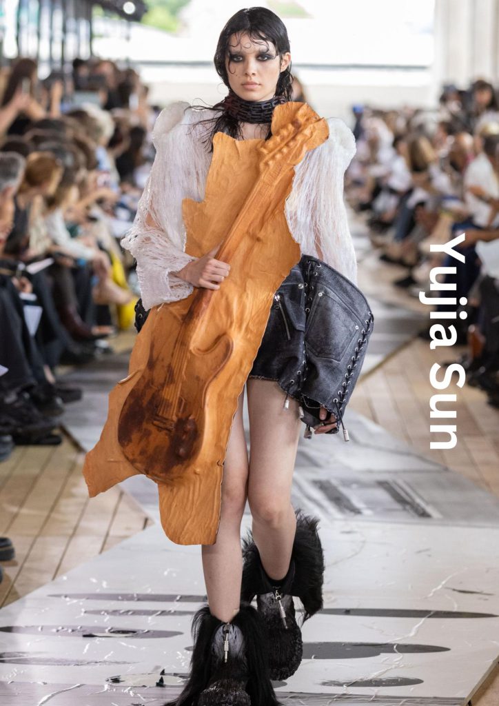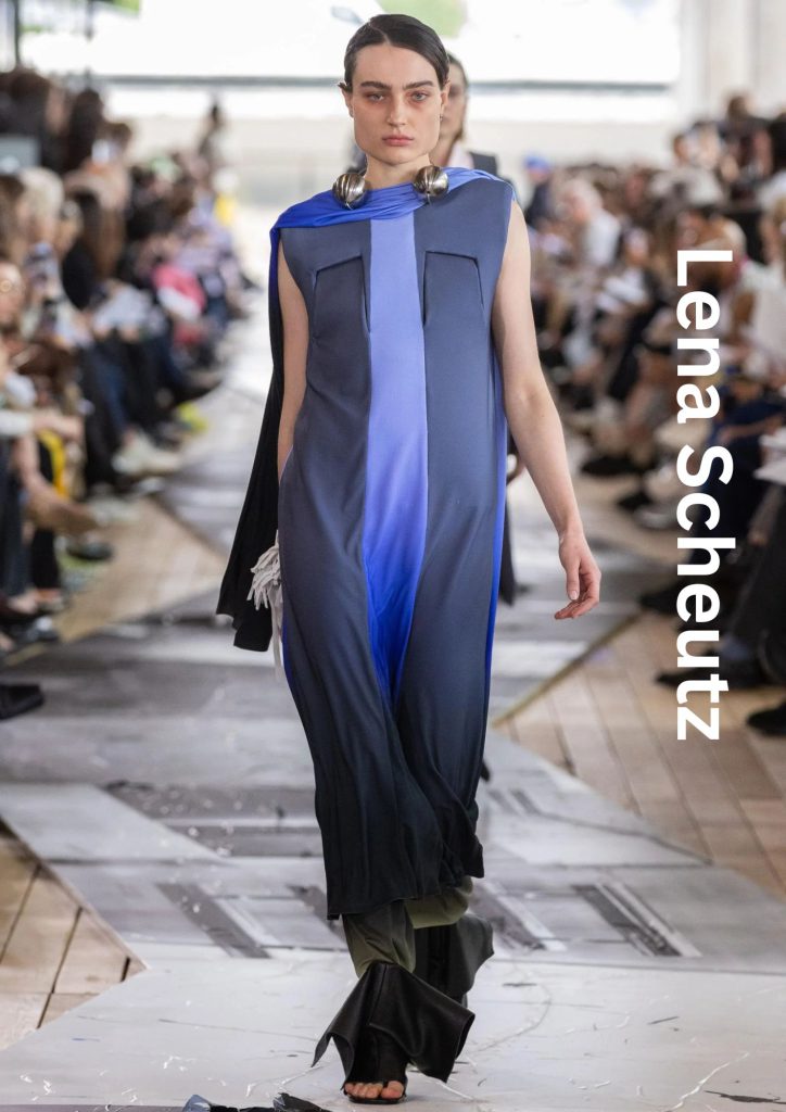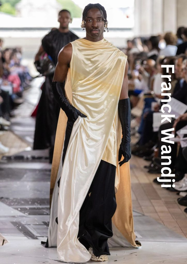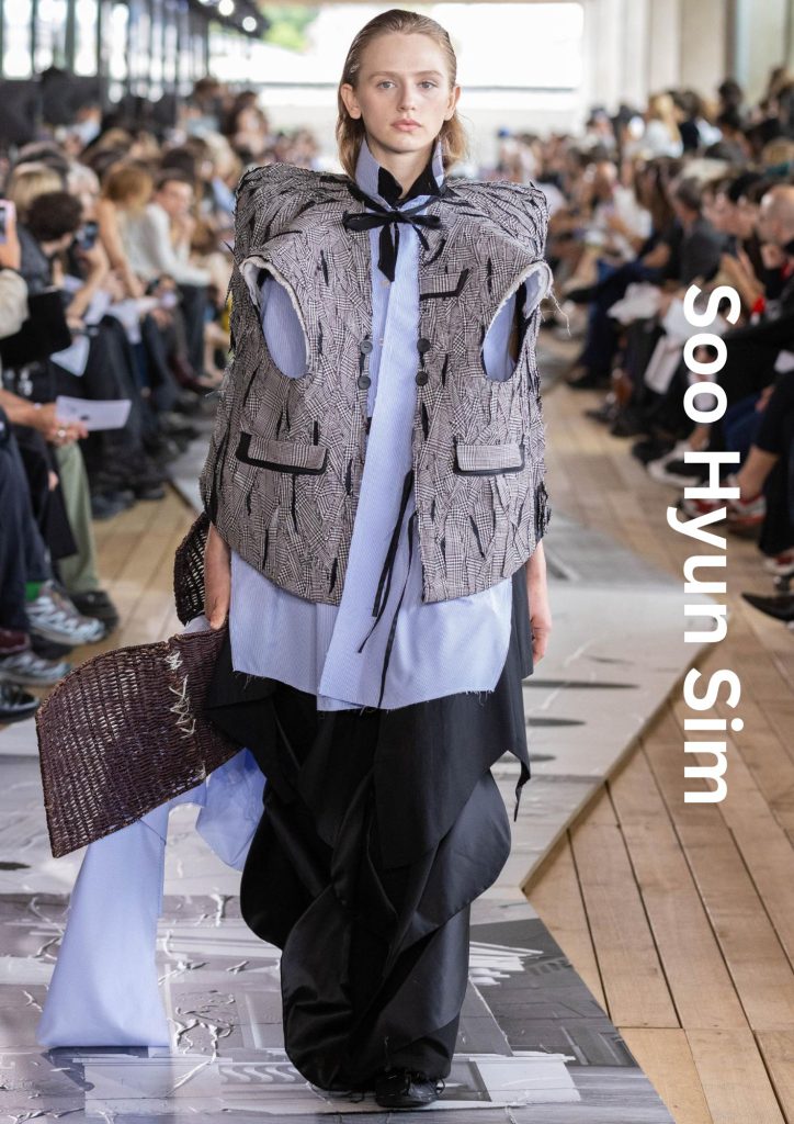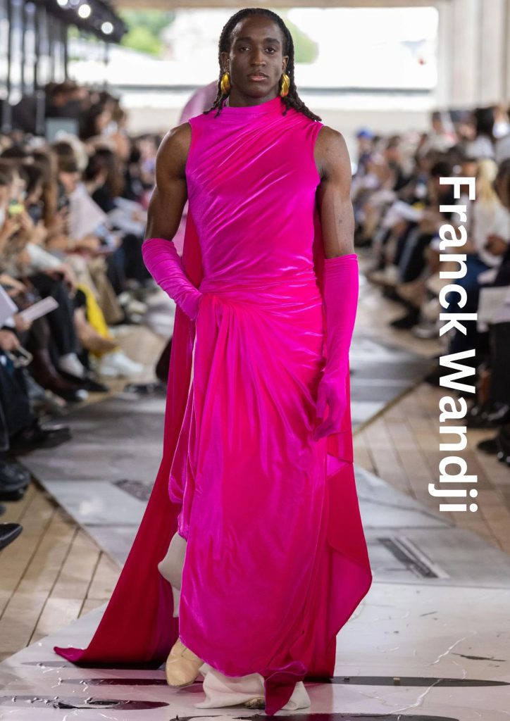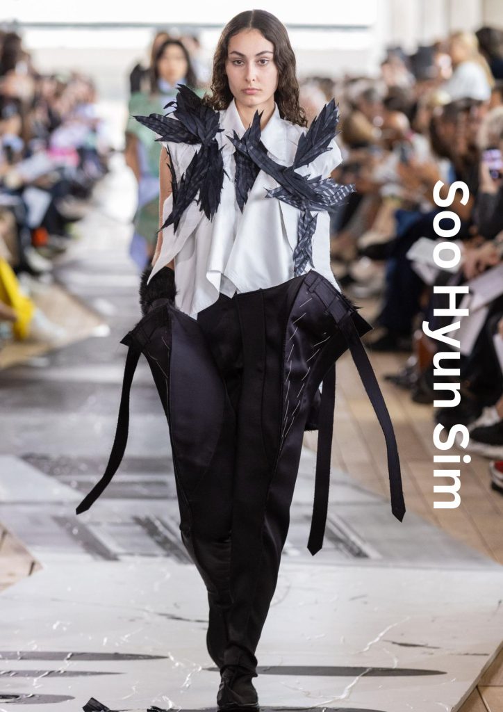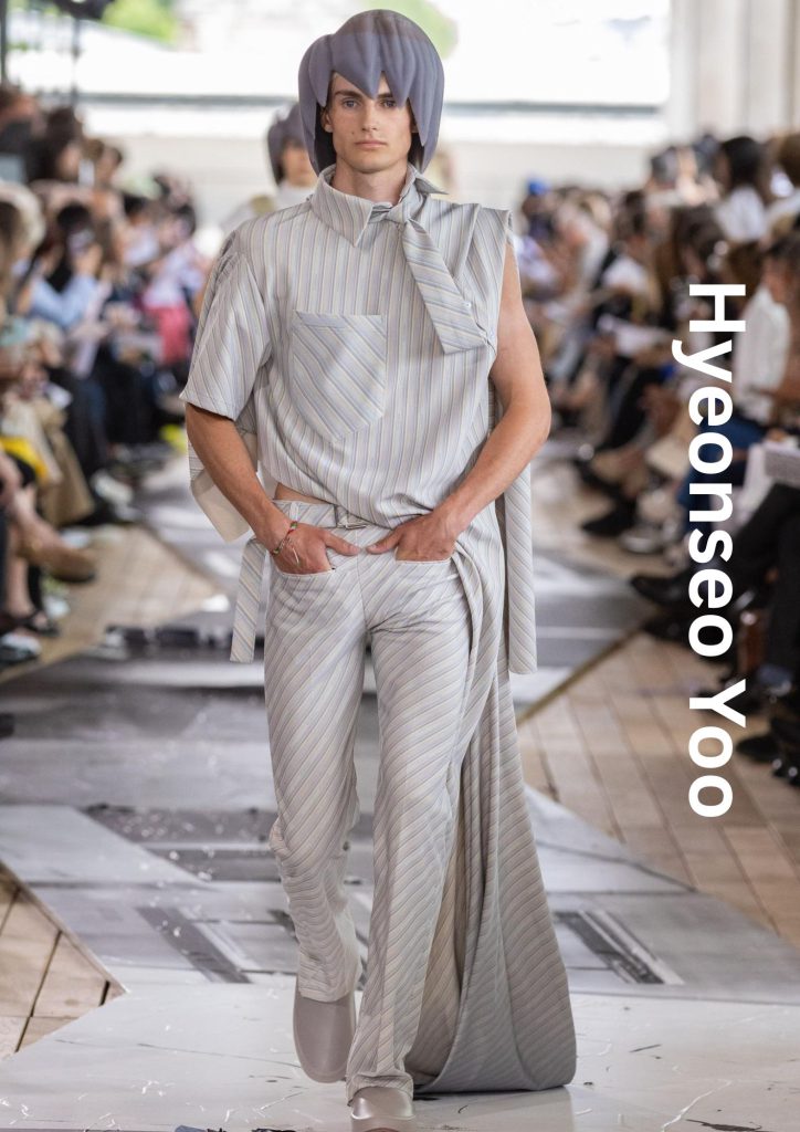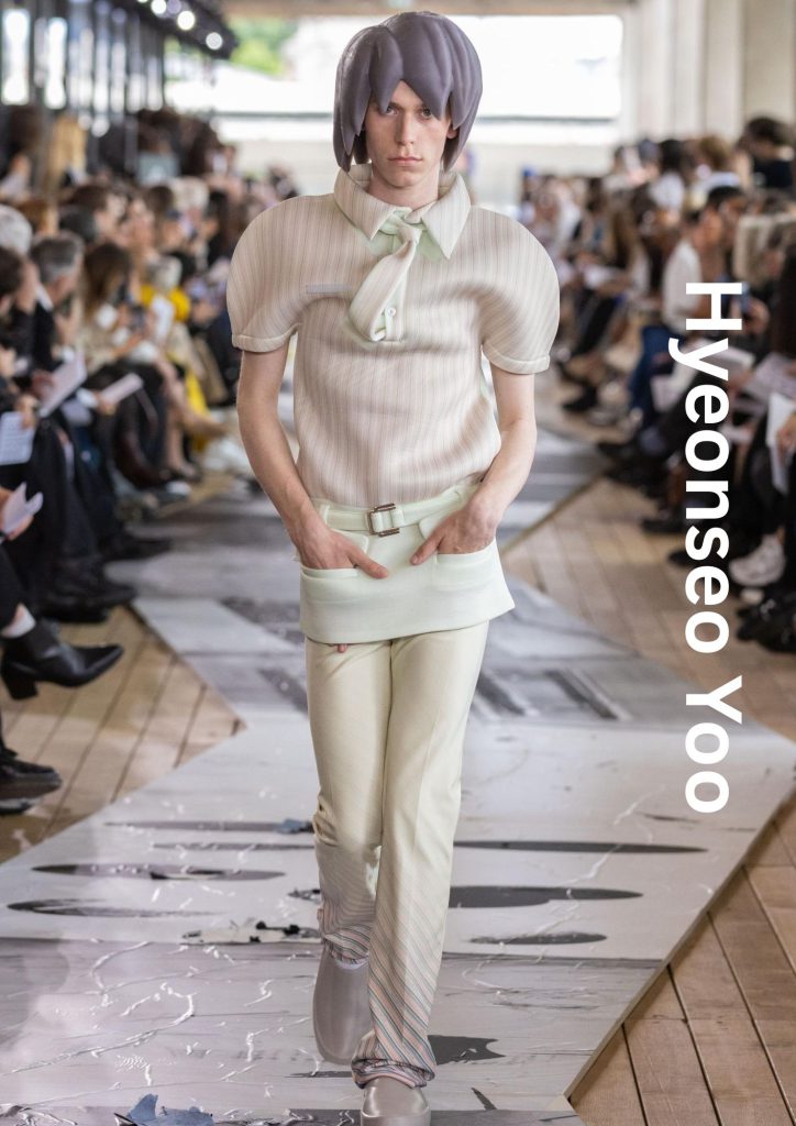 “If I had to sum it up in a few sentences, I would say that this collection features silhouettes imbued with a naïve clumsiness,” says the designer Antoine Lafleur. “It reveals, in a childlike manner, how to create a counterfeit synthetic elegance with whatever is at hand.” The aim of the collection was to create a conversation between a normal guy growing up in the world and a fashion student, growing into the fashion sphere. To make this happen, he juxtaposed 50s and 60s haute couture references that he discovered throughout his research, with something super poetic, raw and basic about Paris, the urban landscapes, the textures, but also the people and their attitude. “My inspiration mainly comes from what surrounds me, the conversations I have, the people I love, and the banality of everyday life that everyone tries in their own way to shape into something exceptional,” he says. He loves sourcing new fabrics – each silhouette has a surprising element. Some of them have a special material, some have a really unusual fabric in general. “I like to show something literal while playing with the eye of the beholder,” he says. Bringing all his constant inspirations together was a challenge, but the result is a coherent, well-constructed, and of course, a surprising collection.