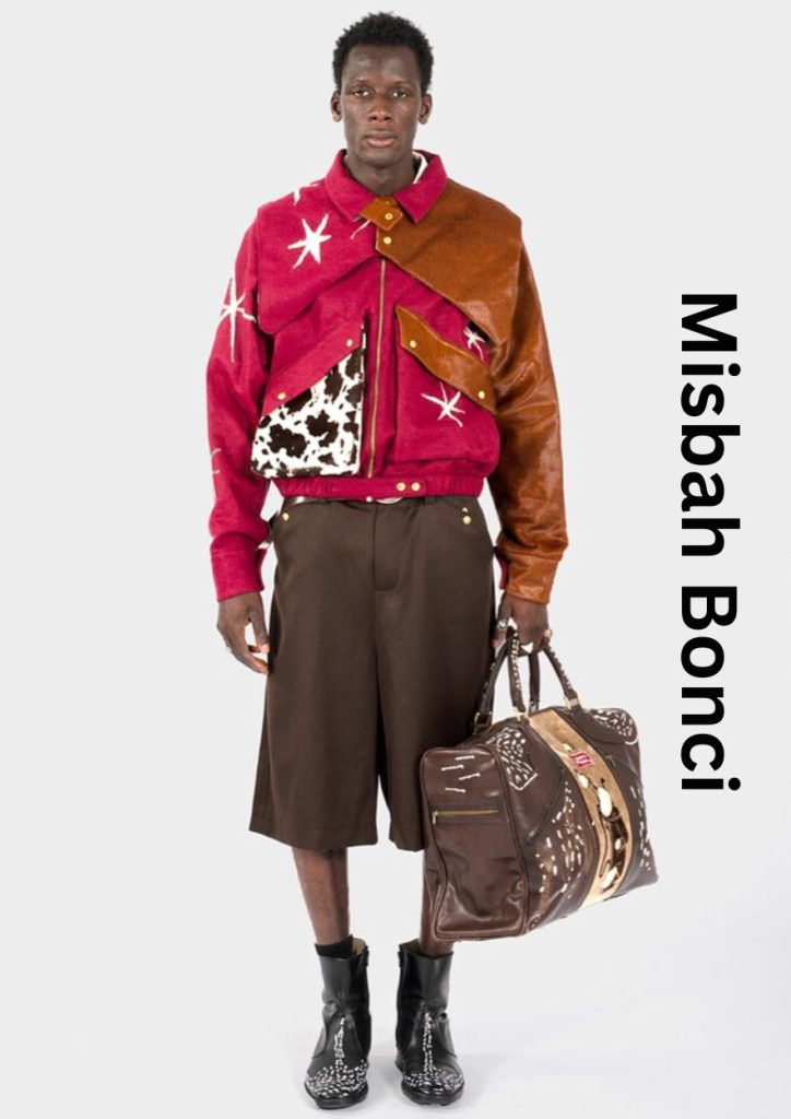 Misbah Bonci delivered one of the most conceptually striking collections of the year. Inspired by the Suri people of Ethiopia’s Omo Valley, Bonci transformed the concept of ritual scarring into high-fashion aesthetics.