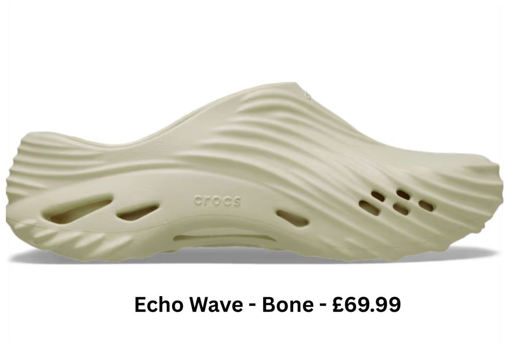 The Echo Wave Collection marks a bold, futuristic evolution in the Crocs line-up, seamlessly blending the brand's signature comfort with a striking, digitally inspired aesthetic. Building on the momentum of the Echo series, this collection features a fully moulded design with intricate, wave-like sculpting that flows from the upper down to the outsole, creating a sleek and architectural silhouette. Engineered for those who refuse to compromise on style or utility, the shoes are equipped with a revolutionary LiteRide™ footbed for "sink-in" softness and a lightweight Croslite™ construction that ensures all-day durability. With enhanced breathability via lateral ventilation and a secure heel capture for an improved fit, the Echo Wave is a versatile, street-ready staple that redefines the boundaries of modern footwear.