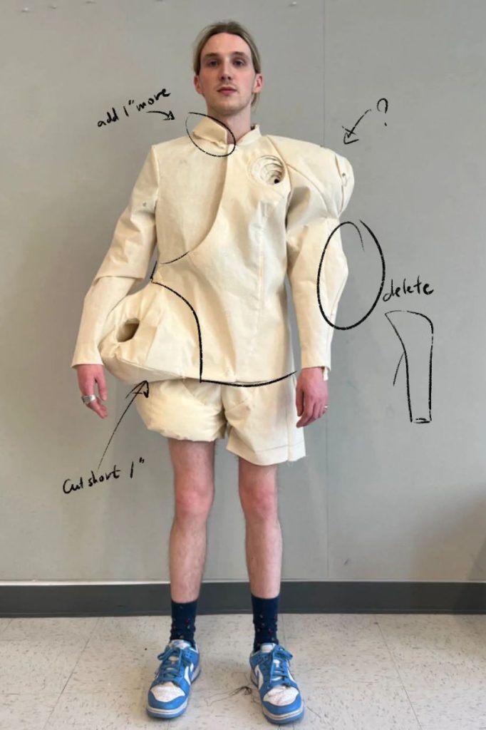 The genesis of Jiaying’s collection lies in a quiet rebellion. During her undergraduate studies, she noticed a heavy institutional emphasis on womenswear, which sparked a desire to apply that same level of fluid creativity to the male form.
