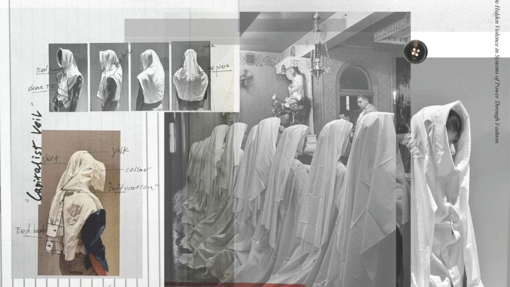 • The Concept: Initial sketches focused on "deforming" the traditional feminine silhouette, using asymmetrical drapes to mimic the body’s reaction to stress.