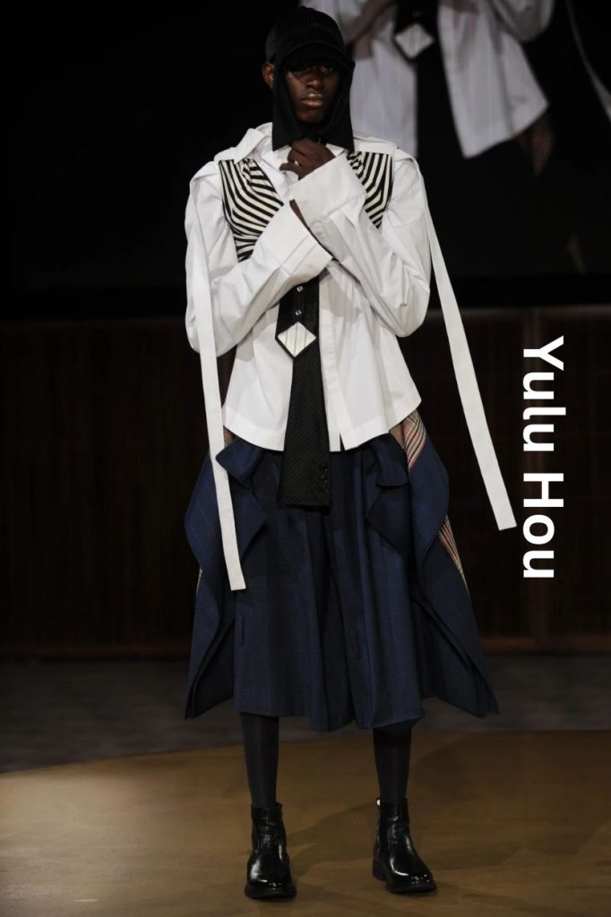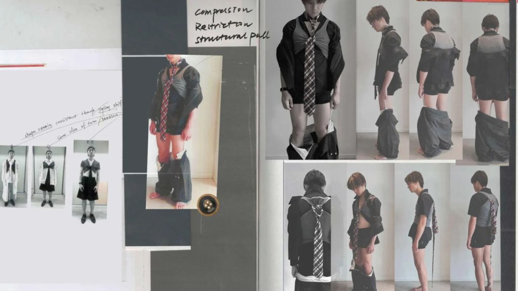 The collection, titled The Body Under Pressure, serves as a psychological and physical inquiry into how external forces—societal expectations, urban environments, and internal anxieties—manifest in the way we dress. Hou’s work occupies the thin line between protection and constriction, questioning whether our garments are armouring us against the world or simply reflecting the weight we carry.