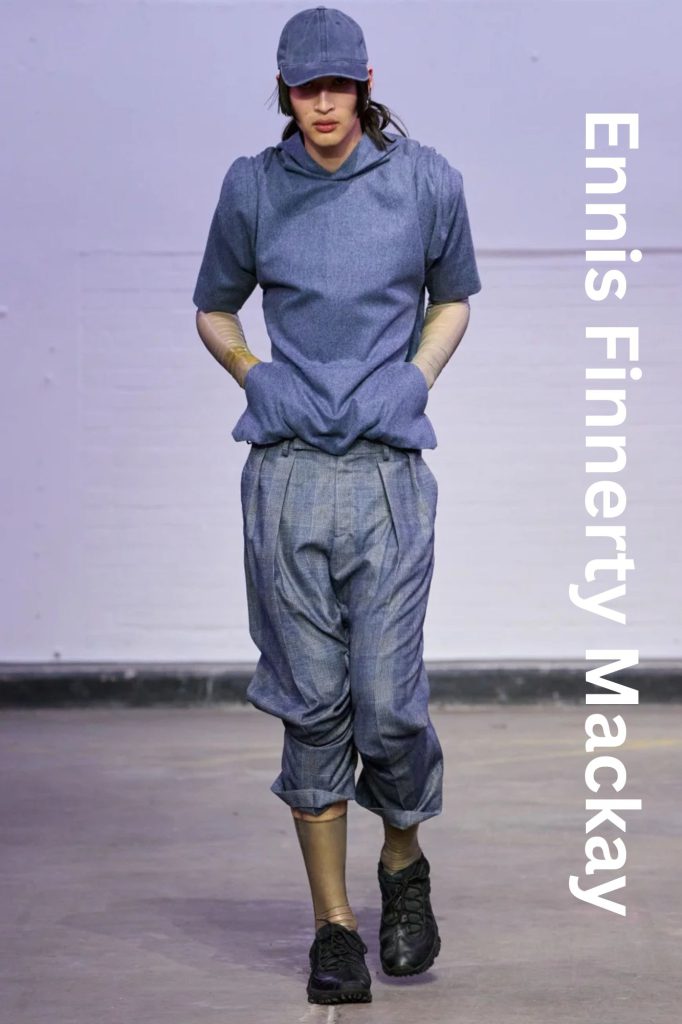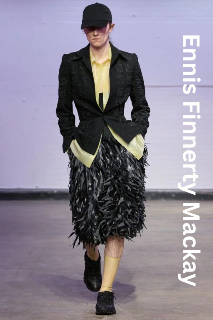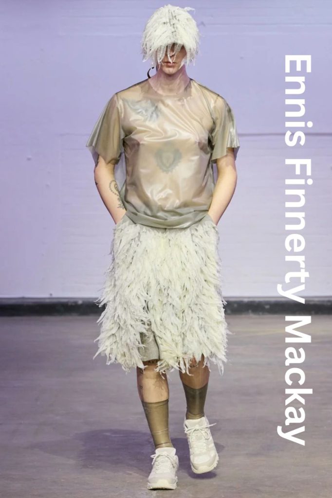 Fresh off the adrenaline of London Fashion Week, Ennis Finnerty Mackay has emerged as one of the definitive voices of the CSM MA Class of 2026. Co-winner of the prestigious L’Oréal Professional Creative Award, Mackay’s collection, titled ‘Perpetual Motion’, is a visceral exploration of the haptic relationship between the body, psychology, and the relentless cycles of human nature.