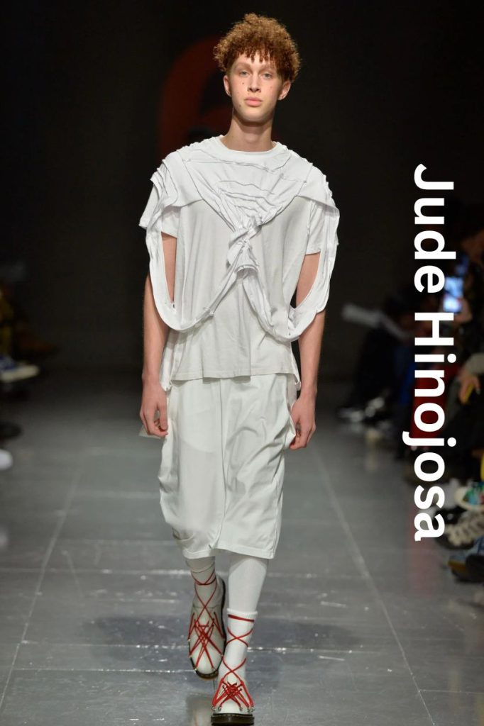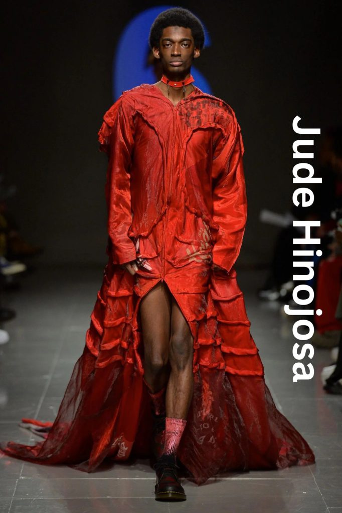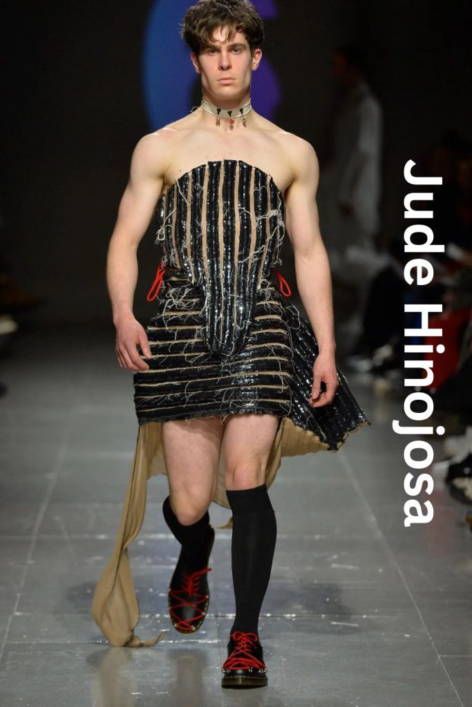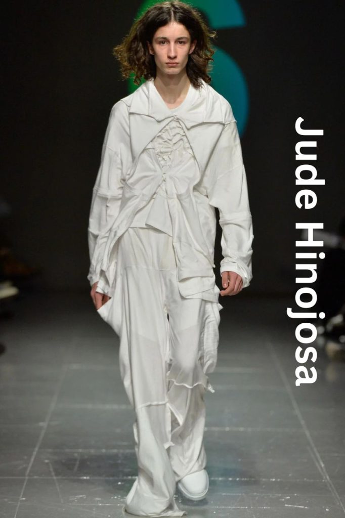 The garments moved with a ghostly grace; as models walked, the accordion textiles breathed, revealing flashes of hidden layers. What looked like a standard suit from a distance transformed into a distorted, sculptural form up close. By using upcycled foundations, Hinojosa successfully anchored radical non-binary silhouettes in a sense of "familiarity." It wasn't just a fashion show; it was a physical manifestation of memory—proving that menswear can be soft, emotional, and profoundly beautiful without losing its edge.