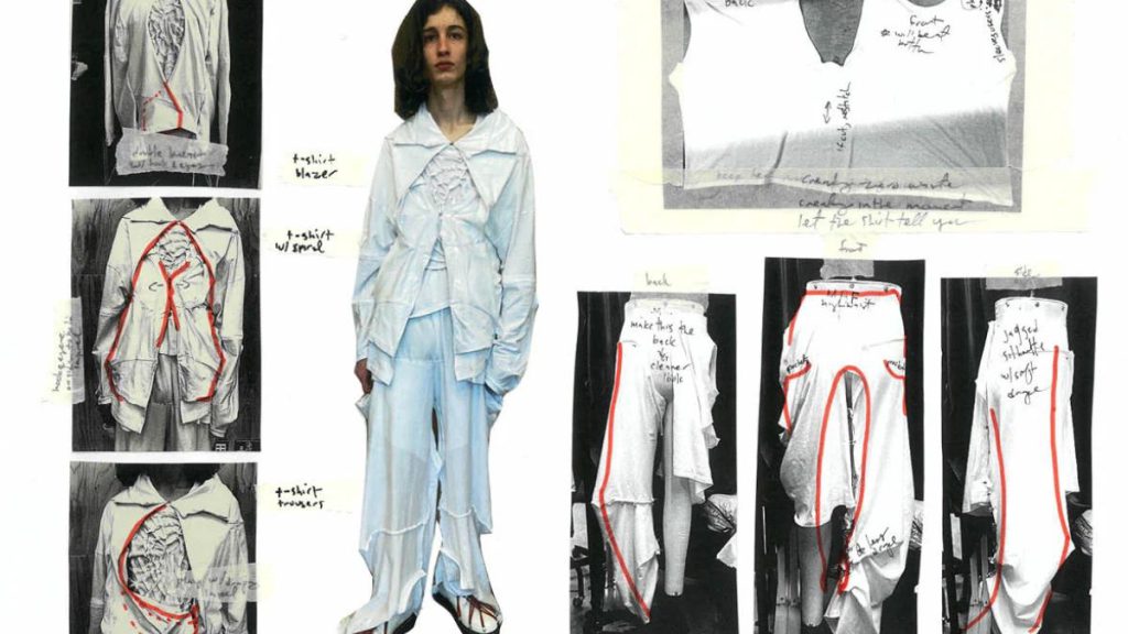 In the studio, the collection moved from paper to "The Twirl"—the kinetic phase where fabric must prove its worth. This stage was defined by the tension between upcycled menswear and ethereal distortion.