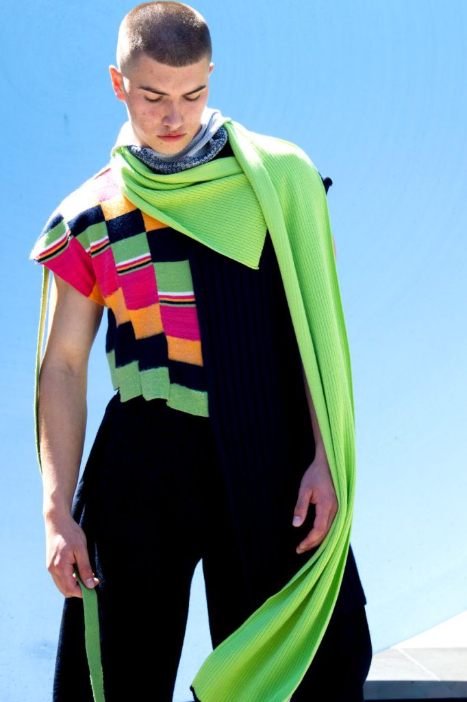 As the dust settles on Graduate Fashion Week, George is finding clarity in his trajectory. With a four-year specialism in knitwear, his future feels expansive. “I would love to continue working in knitwear, or at least ensure it’s part of my future role,” he explains. However, his vision extends beyond textiles; having discovered a passion for graphic print design during a placement year—mastering tools like Illustrator and CAD—he is equally drawn to the fast-paced world of digital surface design. “I see myself as an assistant designer or product developer,” he says, hinting at a career defined by both technical rigour and aesthetic innovation.