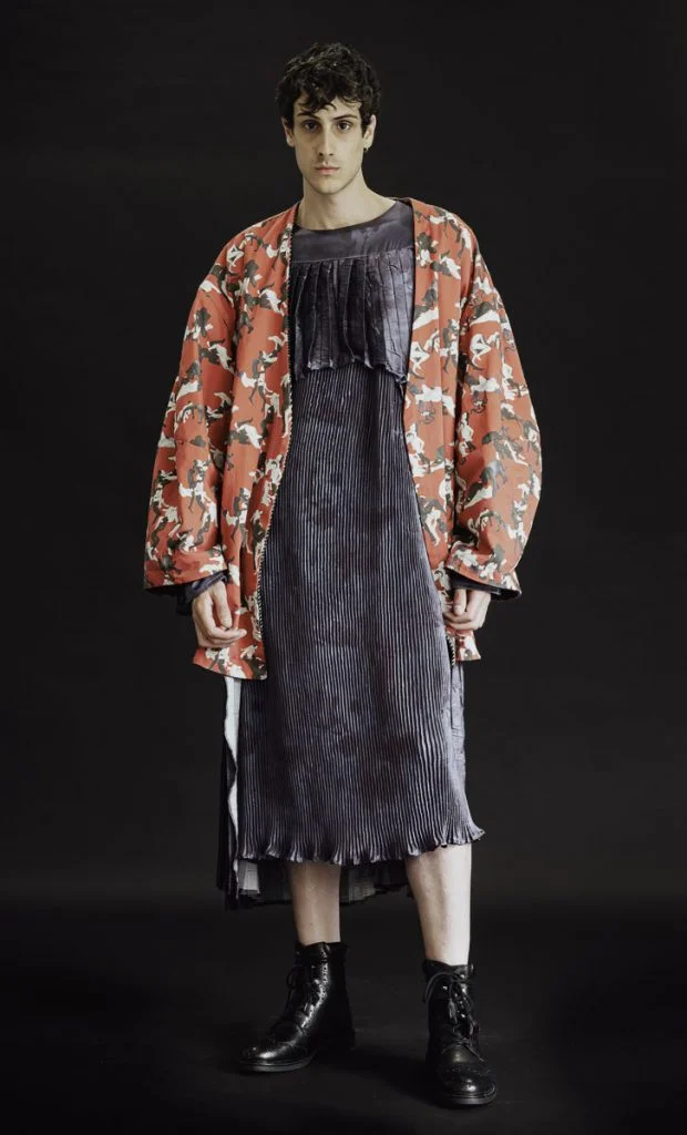 Ettore Poli emerged as a definitive breakout star of this year’s Graduate Collections, staging a visceral return to the Dionysian spirit. His work reimagines the dress not merely as a garment, but as a ritual instrument designed to harmonize human pleasure with the raw pulse of the natural world. By skilfully blending the architectural silhouettes of European folk costumes with the principles of biomimicry, Poli crafts an aesthetic that feels both ancient and prophetic. It is a collection that rejects the sterile in favour of the sacred, positioning fashion as a medium for transcendental connection.