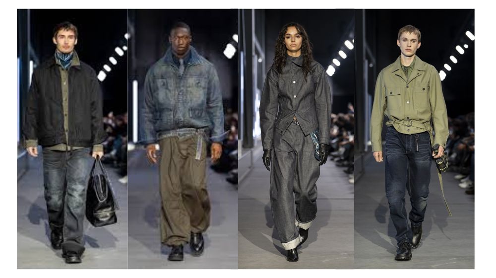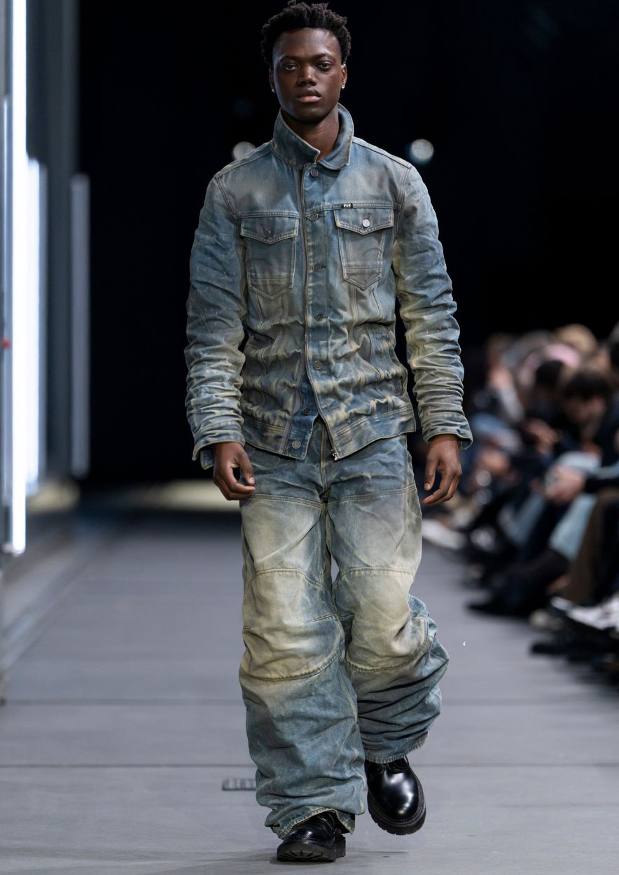 The show's heartbeat was the radical RAW RESEARCH collaboration with Botter, which pushed the boundaries of what denim can actually do. We saw "untreated" indigo surfaces transformed into sculptural armor, featuring displaced seams and bonded fabrics that looked like they were forged in a laboratory rather than sewn in a factory. This experimental energy was grounded by the return of the Arc jean, G-STAR’s crown jewel of 3D construction. For FW26, the iconic corkscrew silhouette was sharpened for a modern audience, proving that the brand’s obsession with how fabric wraps around a moving body remains their greatest competitive edge