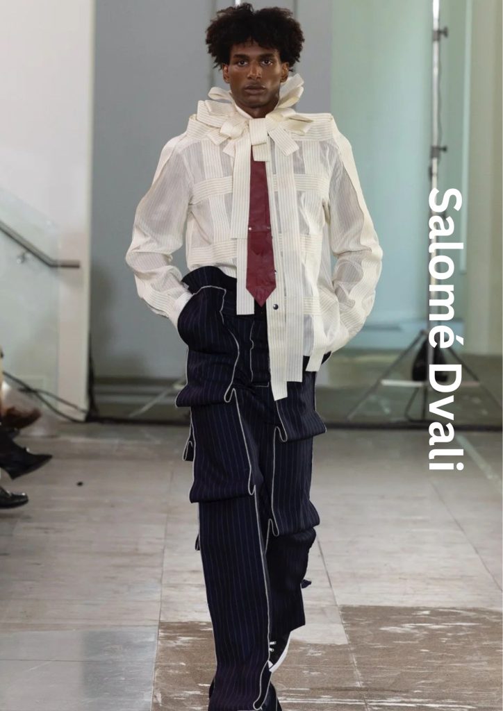 Ultimately, Salomé Dvali is a designer for the modern modernist. Her 2025 show was a standout for its refusal to compromise on technical complexity, favoring a muted, sophisticated palette that allowed the intricate pattern-cutting to remain the protagonist. As she transitions from the academic environment of La Cambre to the global stage, Dvali remains a vital "one to watch." She is not merely making clothes; she is folding space and sound into wearable structures that challenge our perception of what a silhouette can be.
