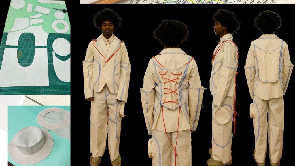 As I draped calico over the stand, I focused on the textures of education. We experimented with transforming traditional school prints into unique textiles. Seeing a "notebook paper" print take the form of a structured blazer was a breakthrough. The toile represents the struggle of the student: trying to find a shape within a system that wasn't built for you, but ultimately tailoring that system to suit your proportions. It’s about proving that a different way of learning leads to a more interesting way of building.
