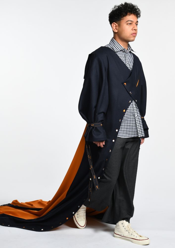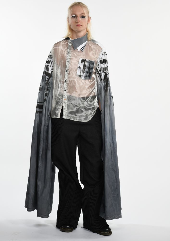 Sarah Muldowney’s graduate collection is a sophisticated exploration of heritage, memory, and modernity. Designed to be inclusive and empowering, the collection deliberately caters to all genders and ages, breaking down the traditional barriers of the fashion industry. It thrives on a series of compelling contrasts—structure versus softness and tradition versus innovation—resulting in garments that honor the weight of the past while looking confidently toward a fluid future.